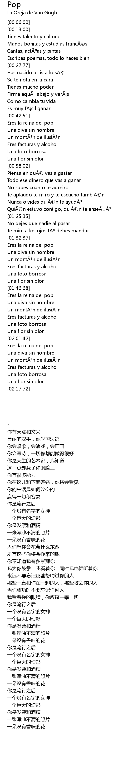 | [00:23.68] | Escribes poemas, todo lo haces bien |