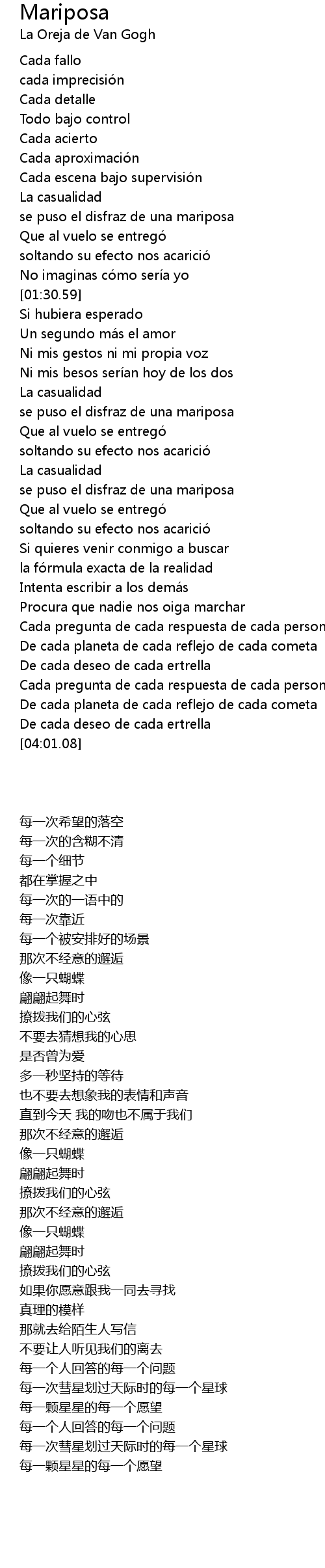| [00:56.44] | se puso el disfraz de una mariposa |