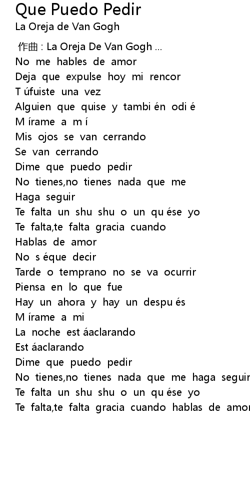 | 歌曲 | Que Puedo Pedir |