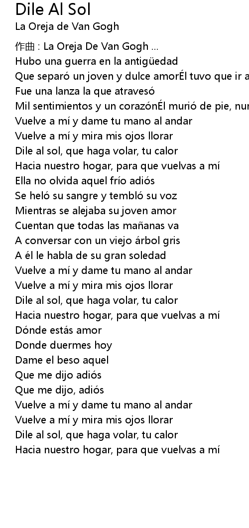 | 歌曲 | Dile Al Sol |