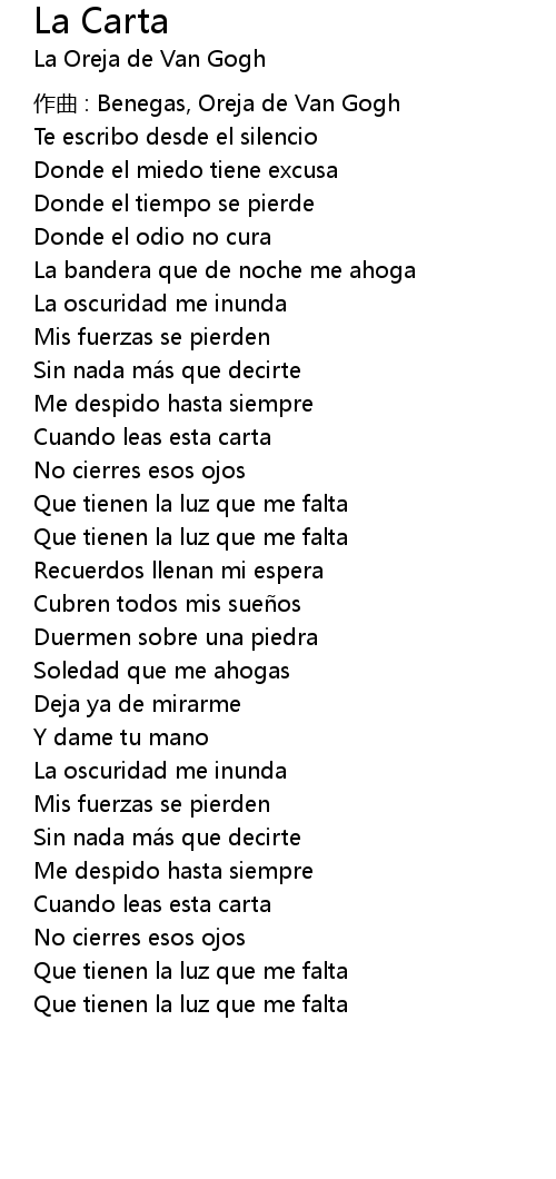 | 作曲 : Benegas, Oreja de Van Gogh | |