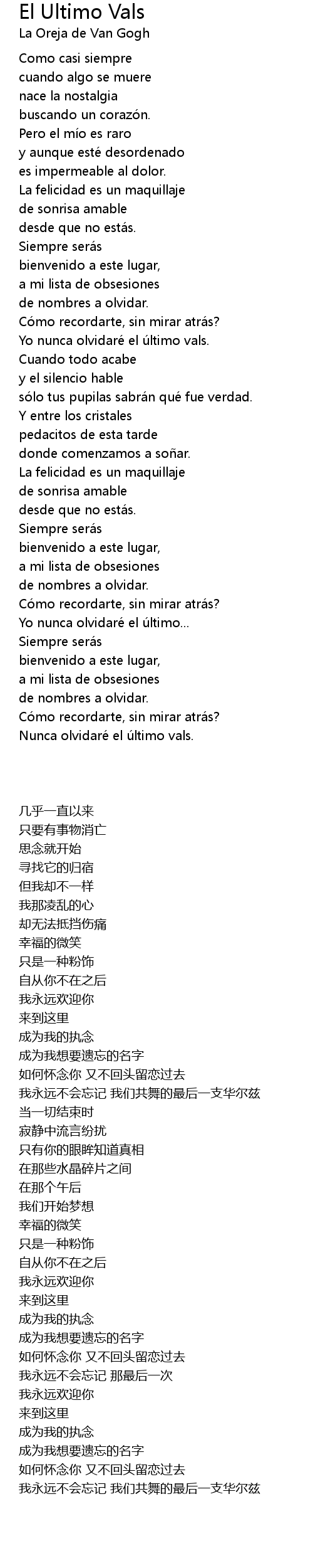 | [03:01.89] | Nunca olvidaré el último vals. |