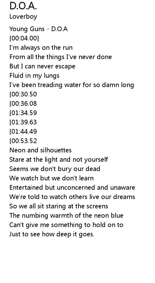 | [00:02.00] | Young Guns - D.O.A |