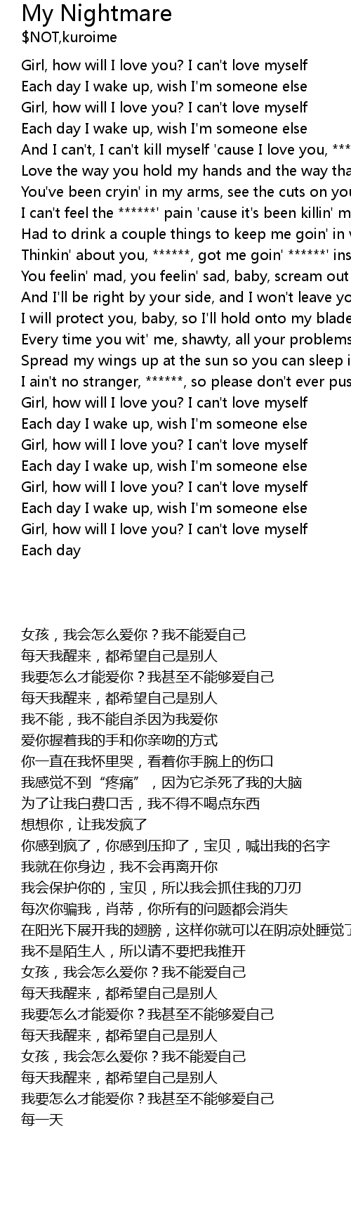 Girl, how will I love you? I can't love myself |