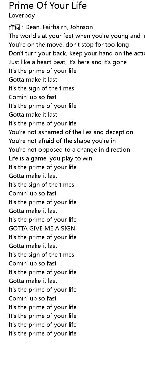| 歌曲 | Prime Of Your Life |