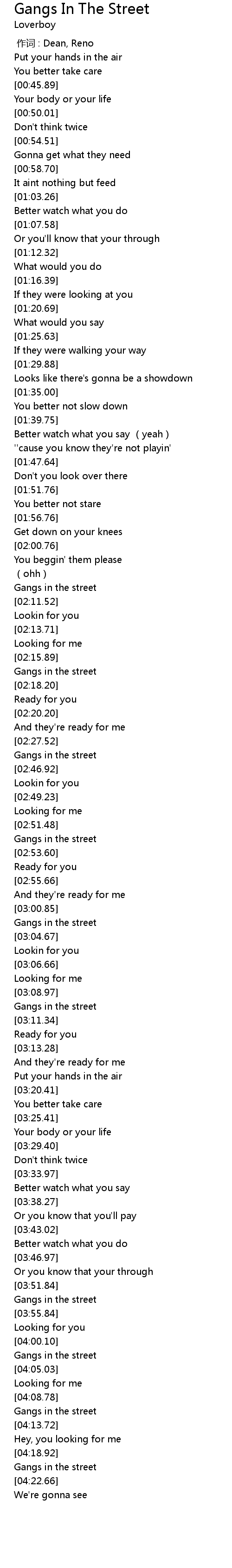 | [03:54.21] | Gangs in the street |