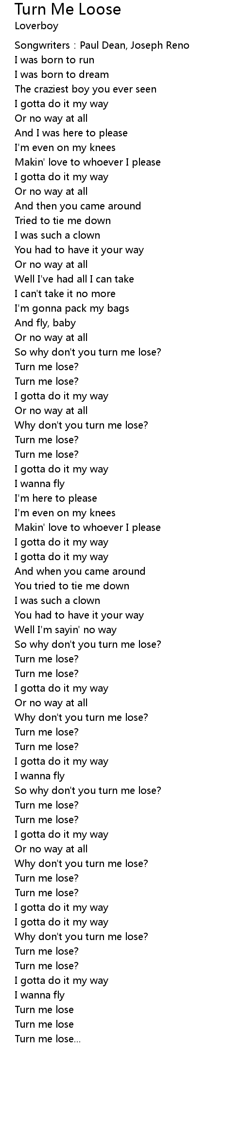 | Turn me lose? | |