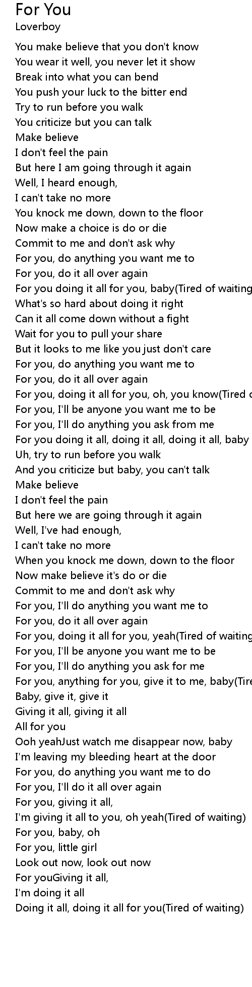 | For you, anything for you, give it to me, baby(Tired of waiting) | |