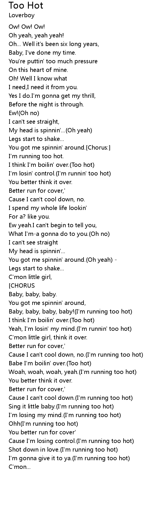 | Baby, baby, baby, baby!(I'm running too hot) | |