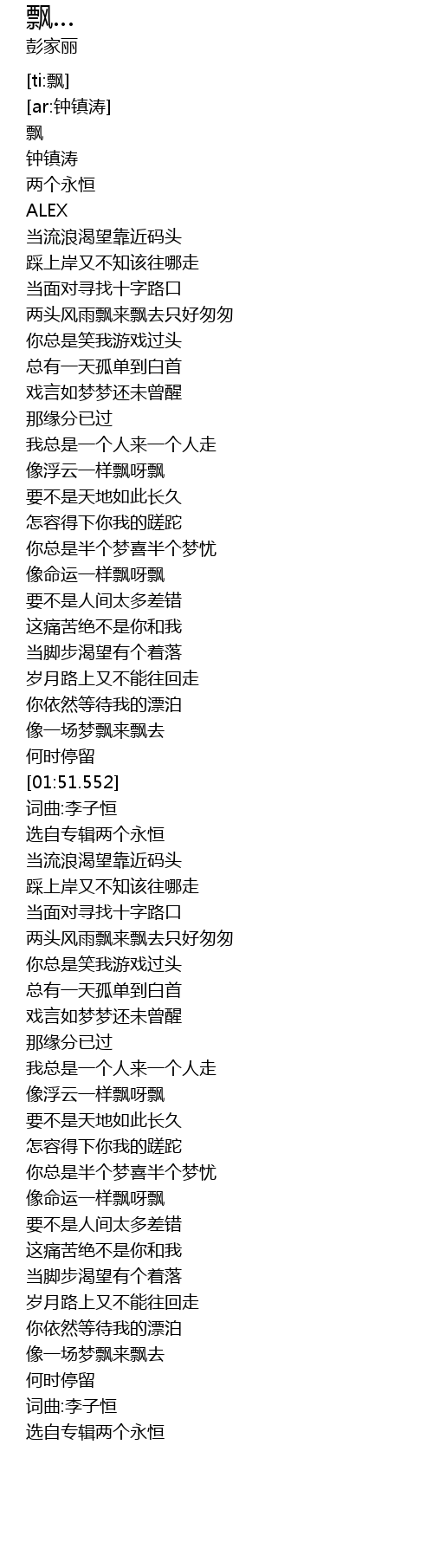 | [03:06.195] | 像浮云一样飘呀飘 |