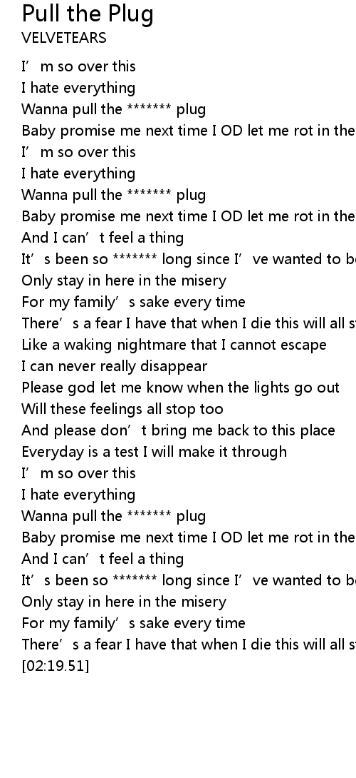 | [00:32.02] | Wanna pull the ******* plug |