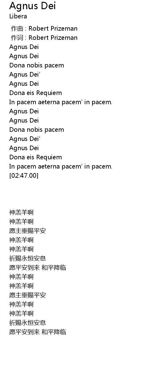 | [02:19.20] | In pacem aeterna pacem' in pacem. |