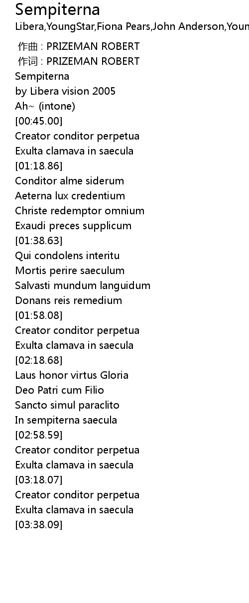 | [00:59.74] | Creator conditor perpetua |