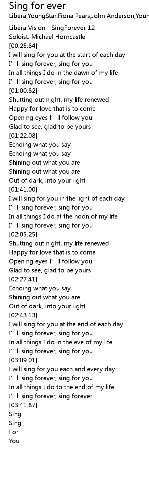 | [00:01.22] | Libera Vision - SingForever 12 |