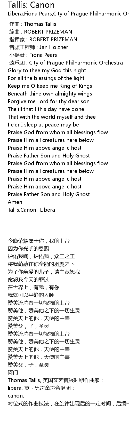 | [00:00.000] | 作曲 : Thomas Tallis |