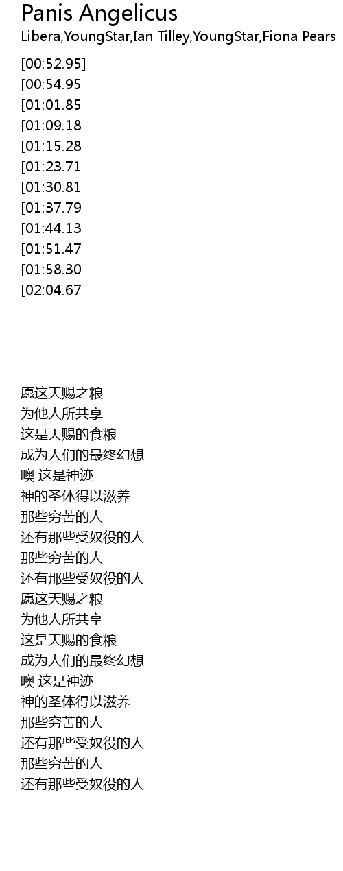 | [02:23.45][00:54.95] | Panis angelicus |
