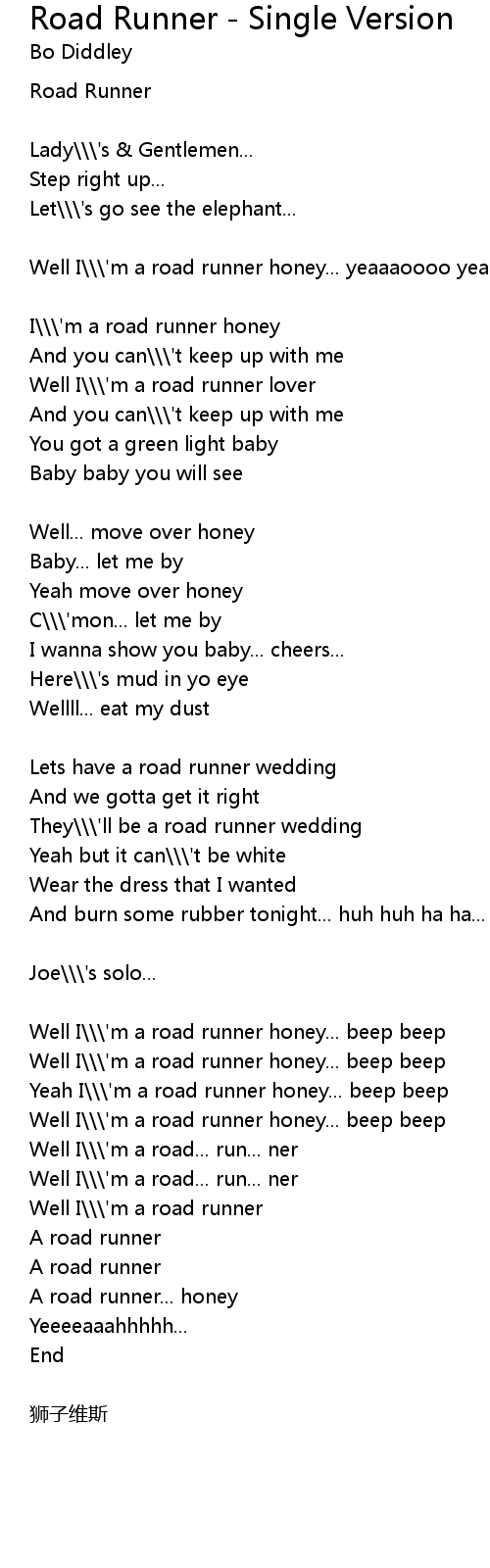| Well I' m a road runner | |