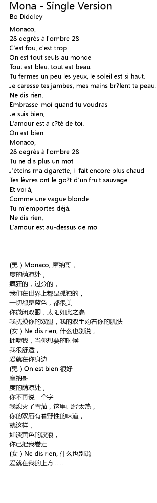 | 歌曲 | Mona - Single Version |