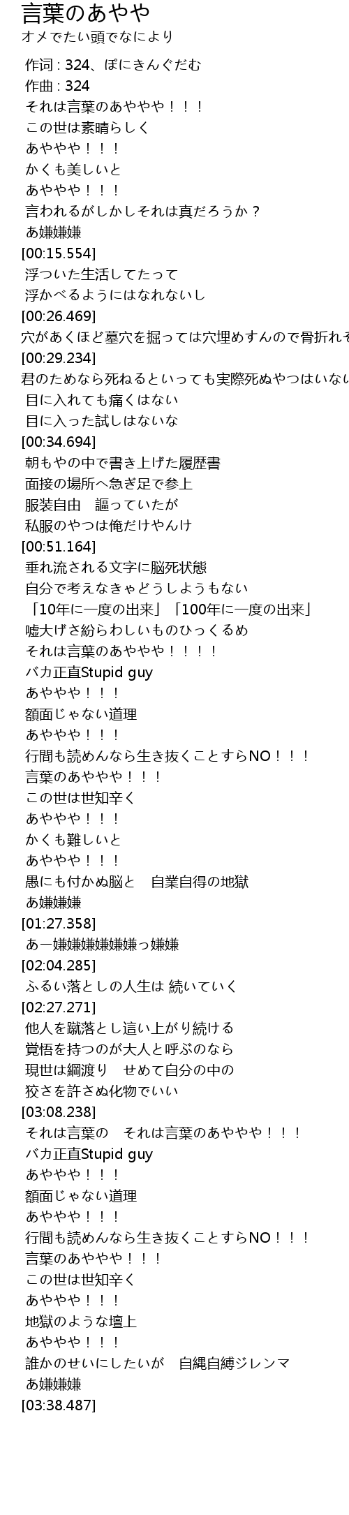 | [03:08.456] | それは言葉の それは言葉のあややや!!! |