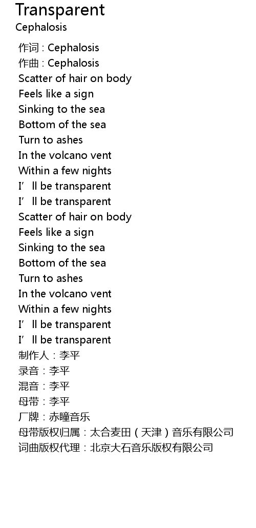 | [00:00.000] | 作词 : Cephalosis |
