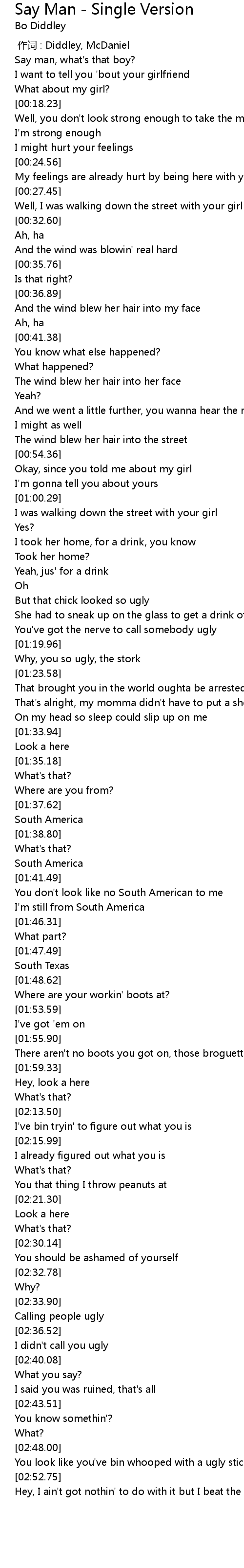| [00:00.00] | 作词 : Diddley, McDaniel |
