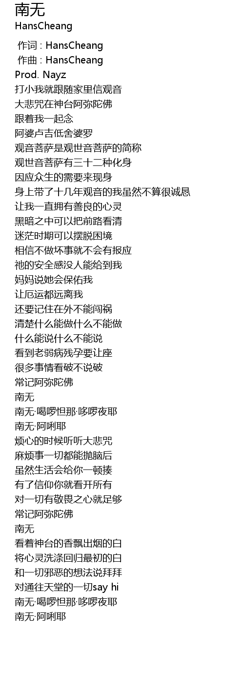 | [01:42.178] | 南无·喝啰怛那·哆啰夜耶 |