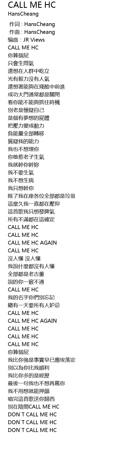 | [01:51.628] | bié zài yīn jiān CALL ME HC |