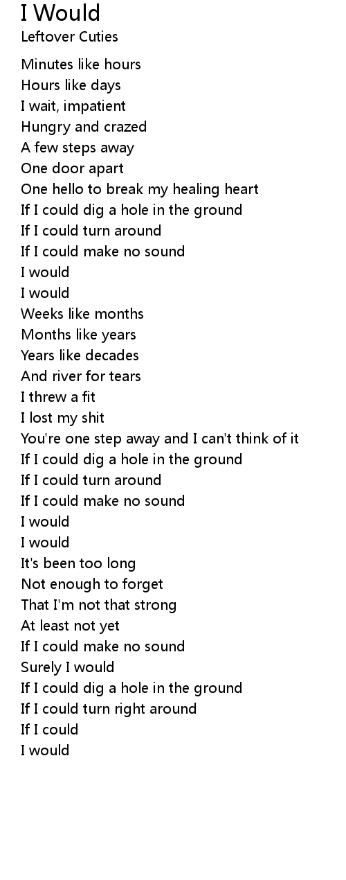 If I could dig a hole in the ground |