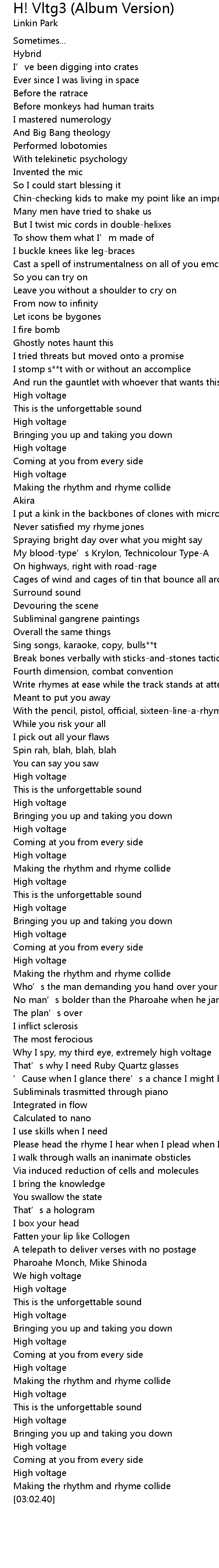 | [02:05.82] | Why I spy, my third eye, extremely high voltage |