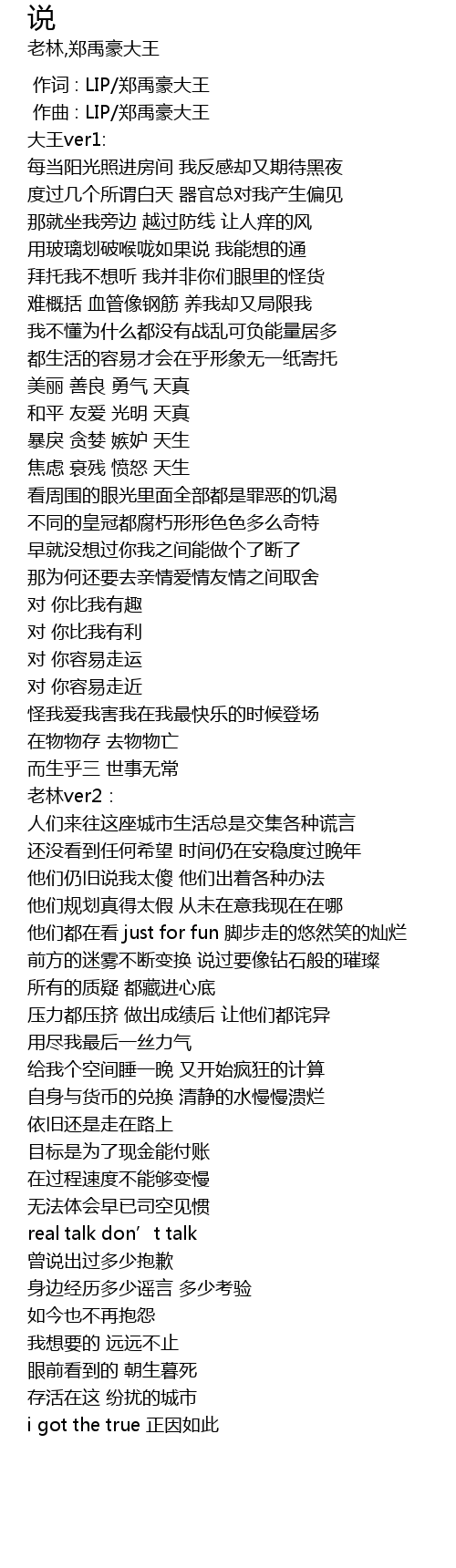 | [00:00.000] | 作词 : LIP/郑禹豪大王 |