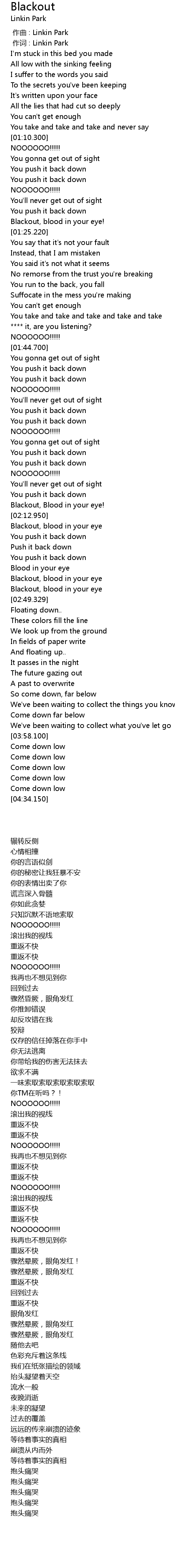 | [00:01.00] | 作词 : Linkin Park |