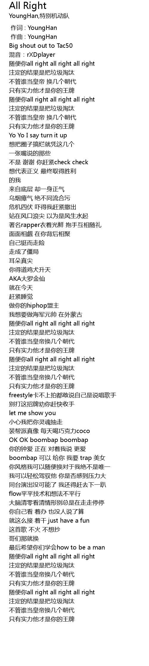 | [01:37.49] | suí biàn nǐ all right all right all right |