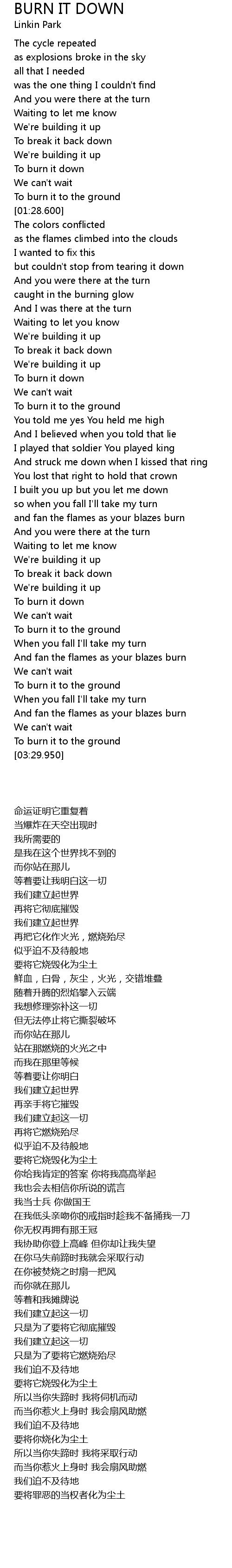 | 歌曲 | BURN IT DOWN |