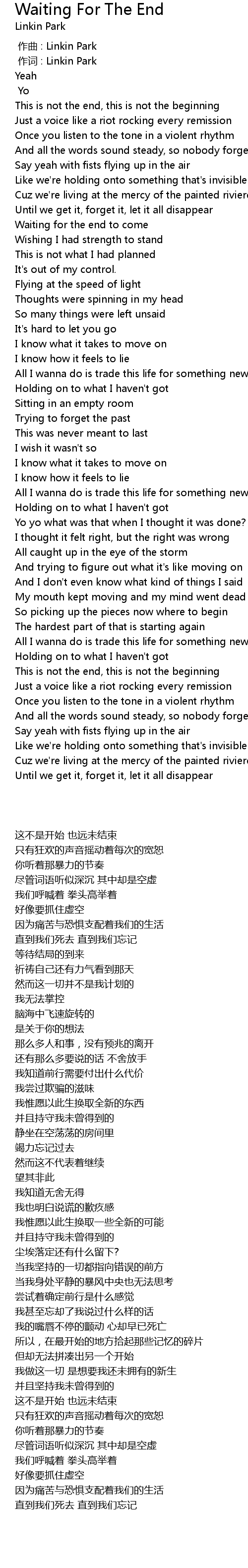 | 歌曲 | Waiting For The End |