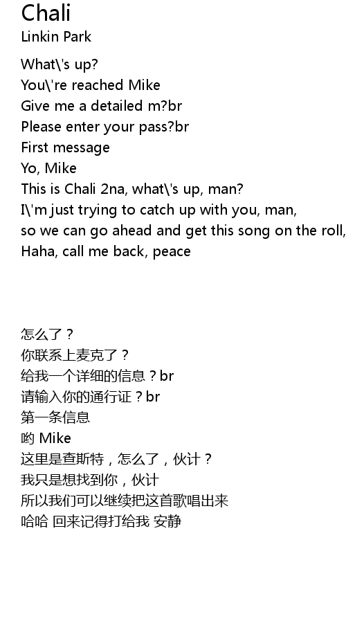 | [00:13.57] | This is Chali 2na, what\'s up, man? |