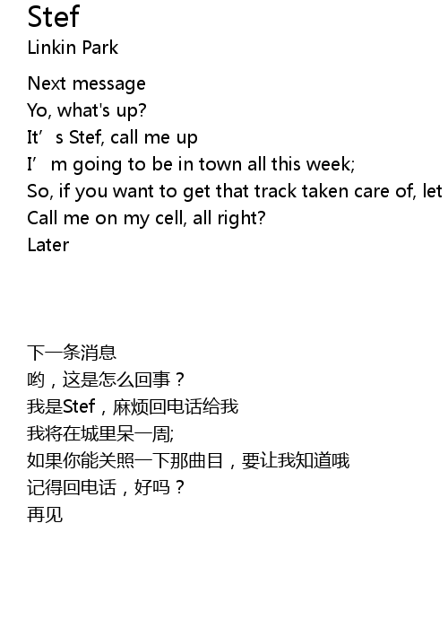 | [00:02.01] | 我是Stef,麻烦回电话给我 |