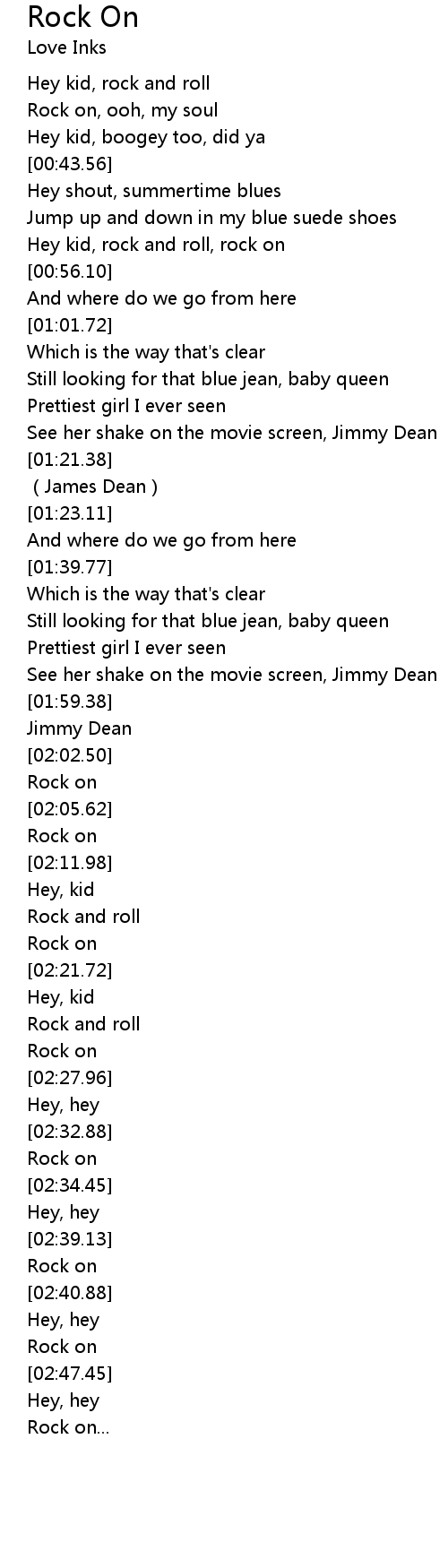 | [00:51.49] | Hey kid, rock and roll, rock on |
