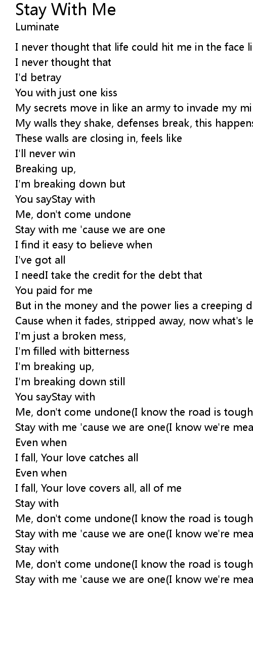 | Stay with me 'cause we are one(I know we're meant to be, this is our destiny) |