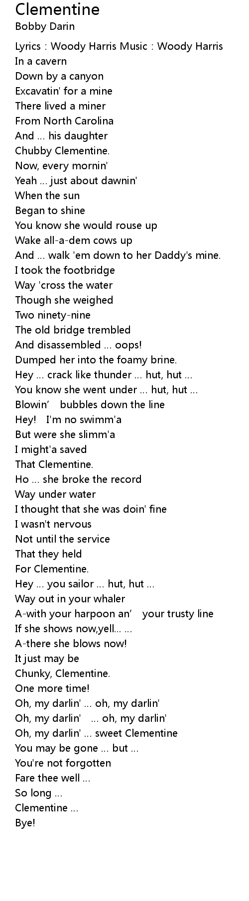 | Oh, my darlin' sweet Clementine | |