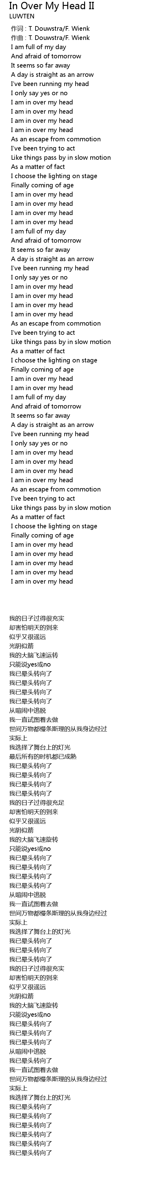 | [00:00.000] | 作词 : T. Douwstra/F. Wienk |
