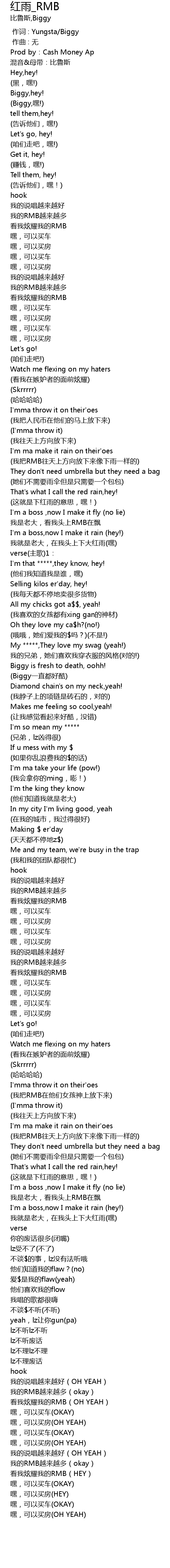 | [03:05.738] | kàn wǒ xuàn yào wǒ de RMB OH YEAH |