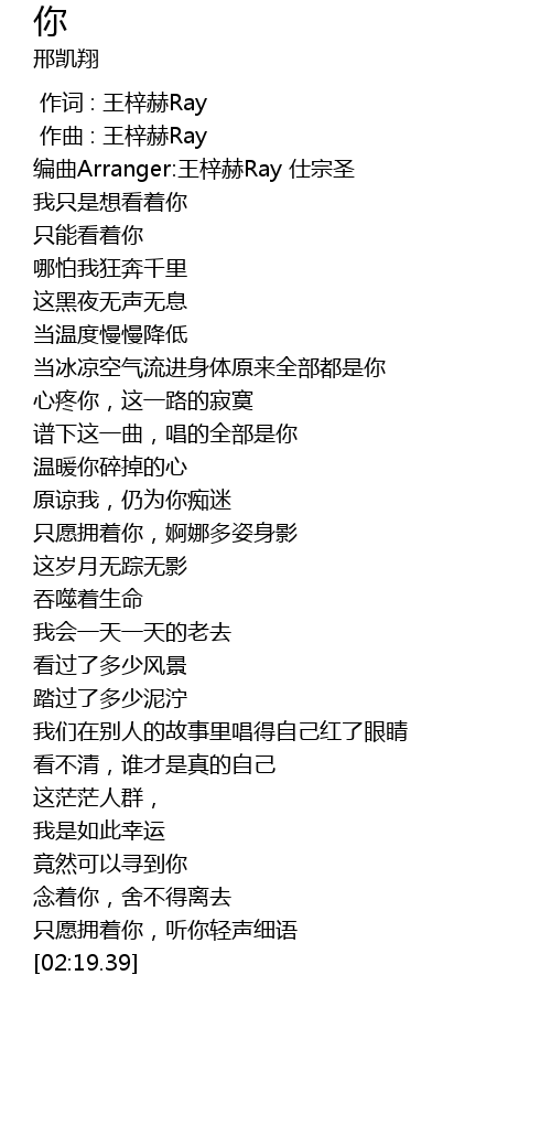 | [00:00.000] | 作词 : 王梓赫Ray |