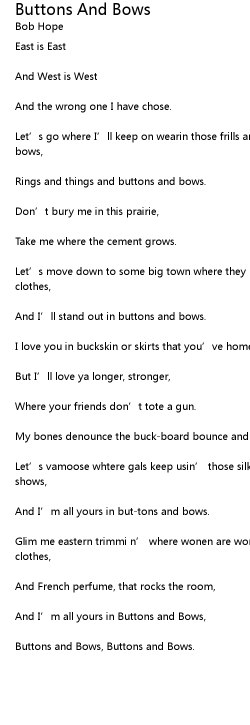 | 歌曲 | Buttons And Bows |
