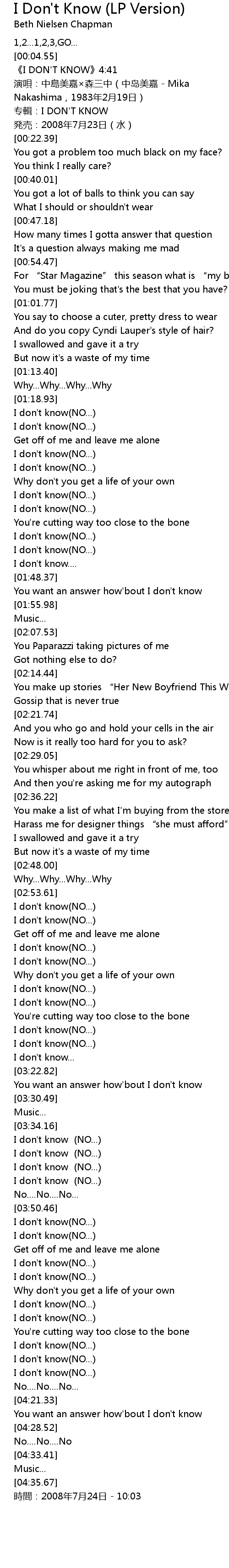 | [04:00.31] | I don't know(NO...) |
