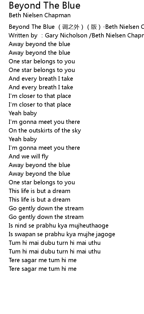 | [00:00.00] | Beyond The Blue diào zhī wài bǎn Beth Nielsen Chapman |