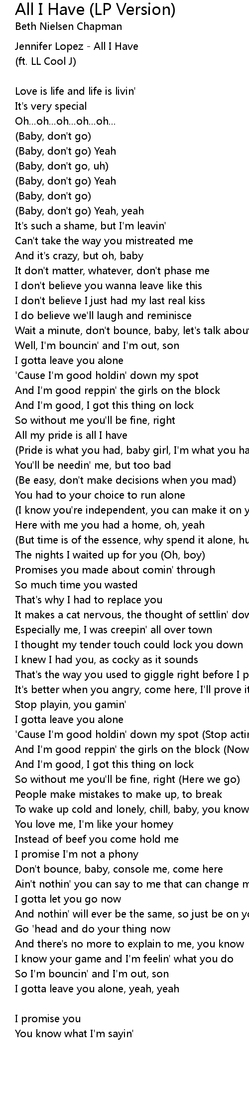 All I Have (LP Version) 歌词