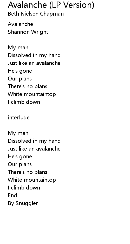 | 歌曲 | Avalanche (LP Version) |