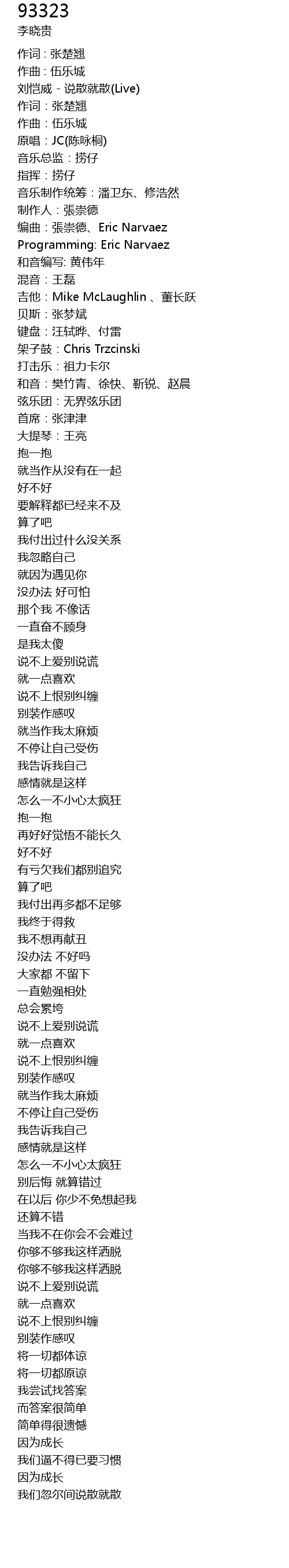 | 刘恺威 - 说散就散(Live) | |