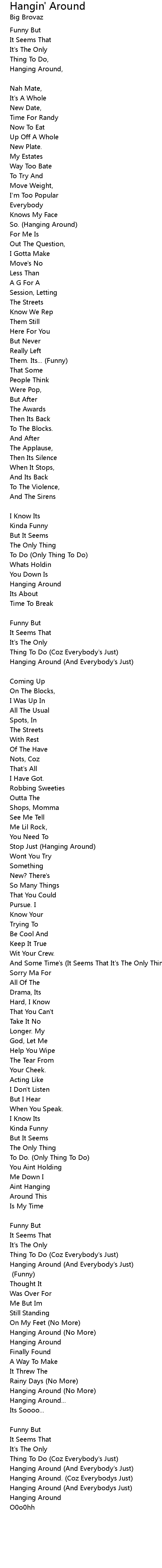 Hanging Around. [Verse 3:] (Funny) |
