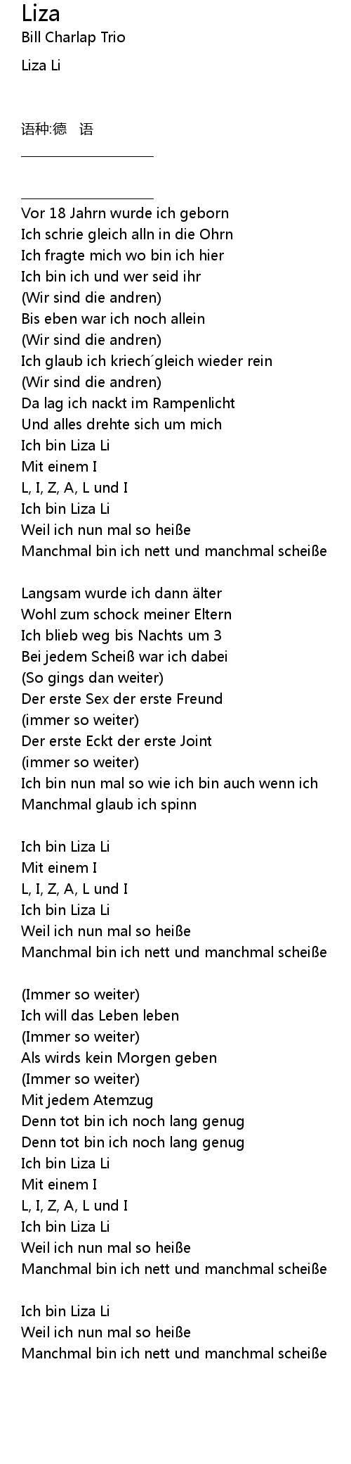 | Ich bin Liza Li | |